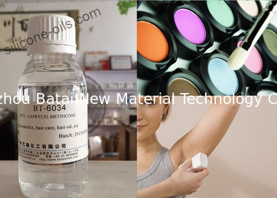 BT-6034 Volatile Alkyl Methyl Siloxane Fluid is added into the oil phase and mixed until solved or dispersed evenly. Due to the presence of the caprylyl group on the silicone backbone, this ingredient has good compatibility with a wide range of organic ingredients and pigments while maintaining very good spreading.